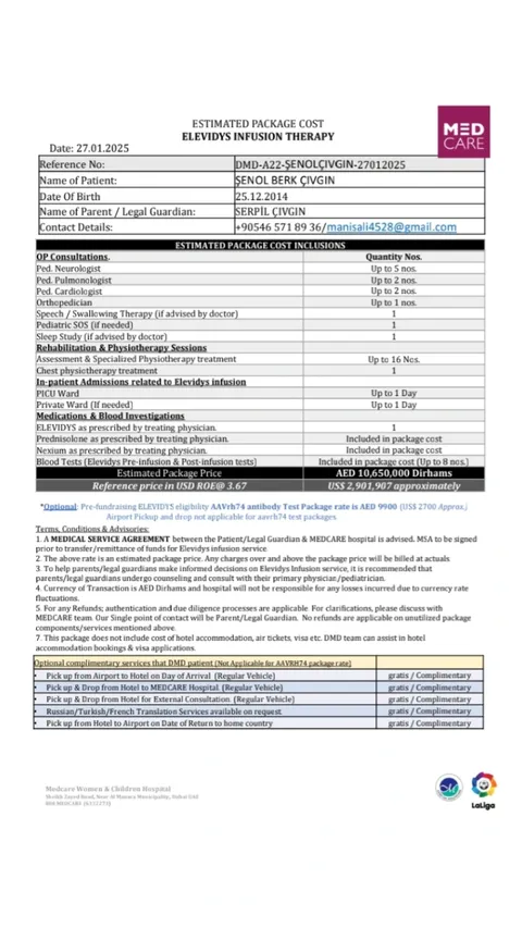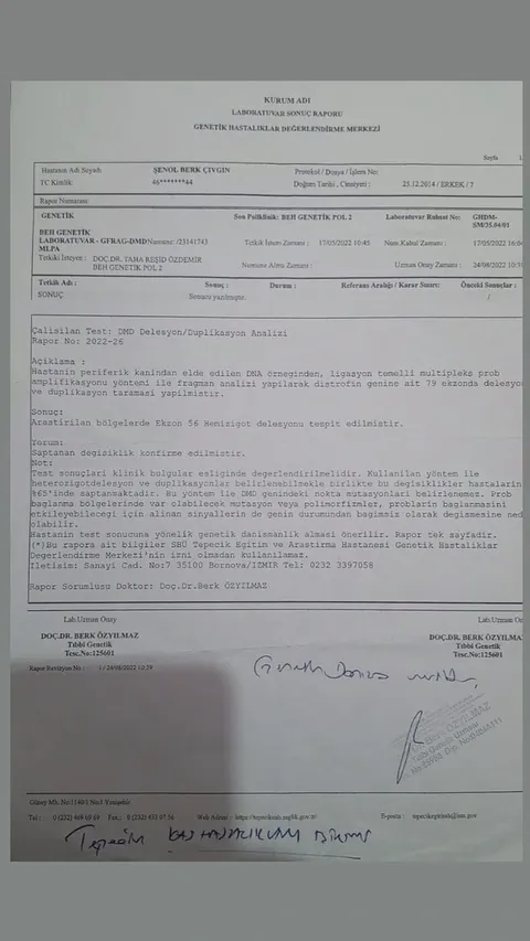 "Babasını yeni kaybetmiş bir çocuk, babasının acısıyla hâlâ DMD'ye karşı hayata tutunmaya çalışıyor." Şenol Berk Çıvgın, 25 Aralık 2014'te Manisa'da doğdu. Küçük yaşta Duchenne Musküler Distrofi (DMD) teşhisi kondu. DMD, kas dokusunun ilerleyici şekilde zayıfladığı genetik bir hastalıktır. Genetik testlerde Ekzon 56 Hemizigot delesyonu tespit edildi. Şenol Berk artık yürüyemiyor, koşamıyor, arkadaşlarıyla top oynayamıyor, okula gidemiyor. Tekerlekli sandalyeye bağımlı yaşıyor. Tüm bu zorluklarla mücadele ederken babasını da kaybetti. Küçük yaşta hem ağır bir hastalıkla hem de babasının acısıyla başa çıkmak zorunda kaldı. Annesi Serpil Çıvgın, oğlunun tedavisi için mücadele ediyor. Yurt dışında uygulanan gen tedavisi (Elevidys) Şenol Berk için umut ışığı.
